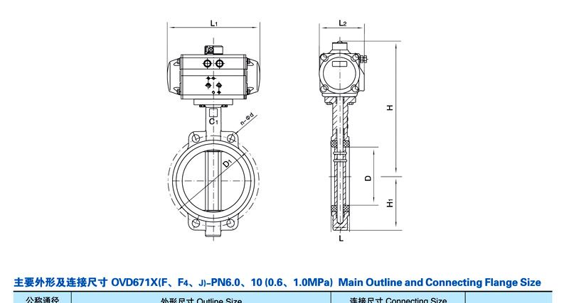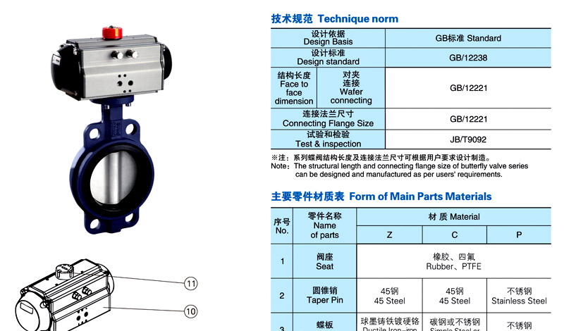 D671气动对夹蝶阀主要技术参数和性能指标: