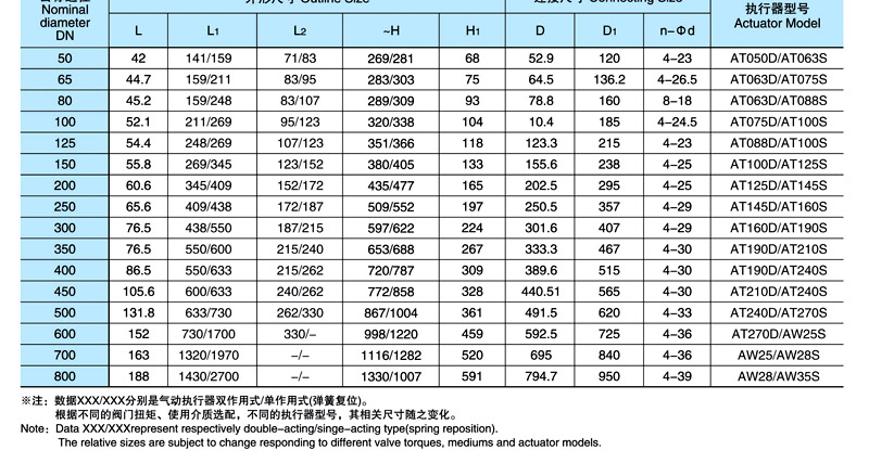 GT、AW两系列产品仅执行机构不同,其他均相同,产品间互换性强。